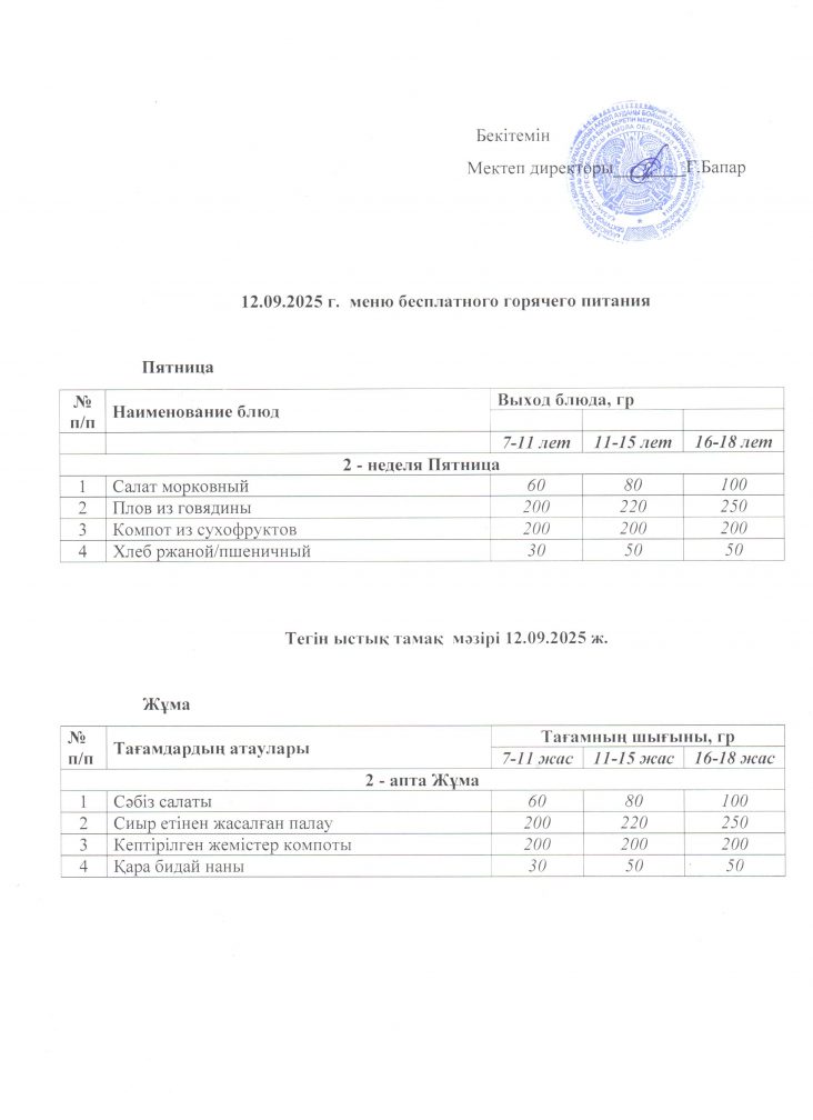 Мәзіp 12.09.2025 ж