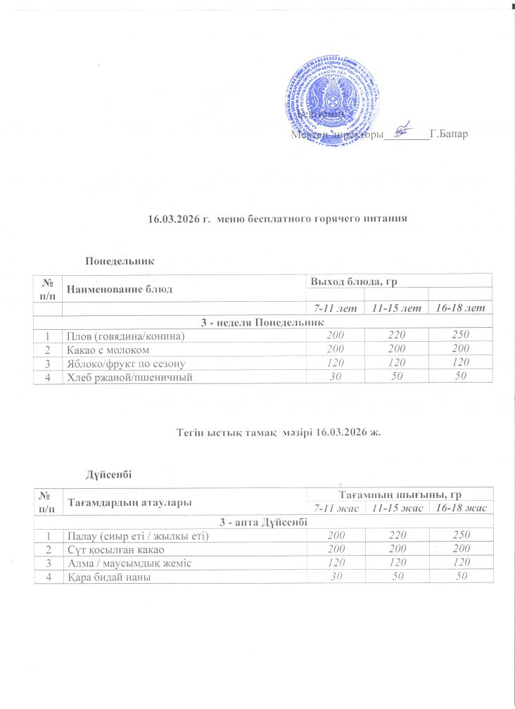 Мәзіp 16.3.2026 ж