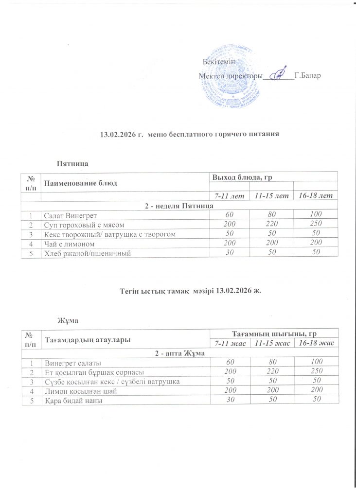 Мәзіp 13.02.2026 ж