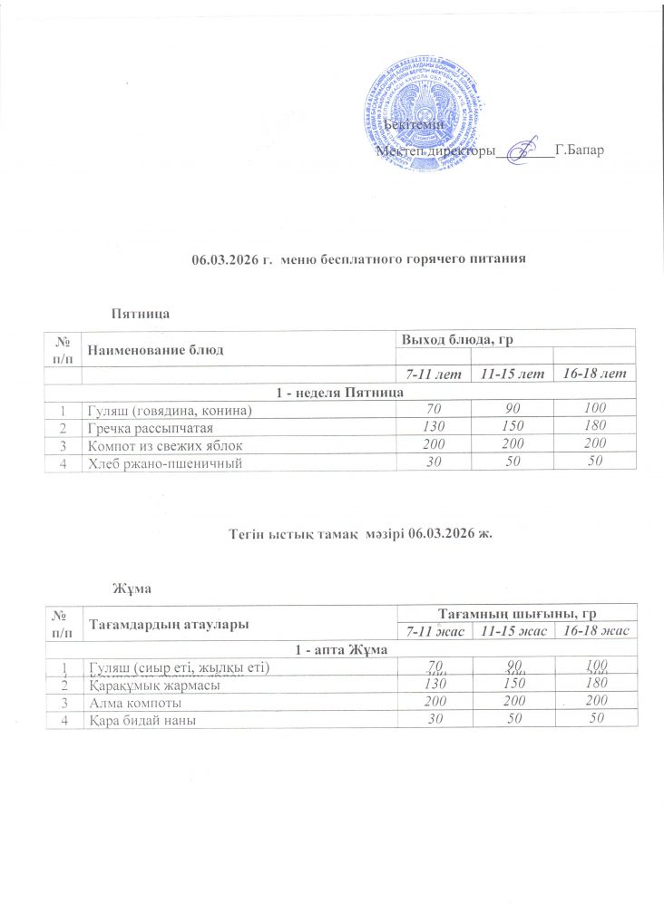 Мәзіp 06.03.2026 ж