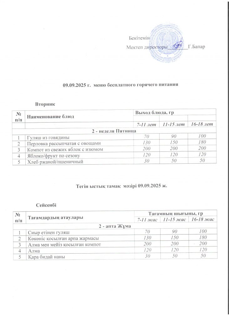 Мәзіp 09.09.2025 ж