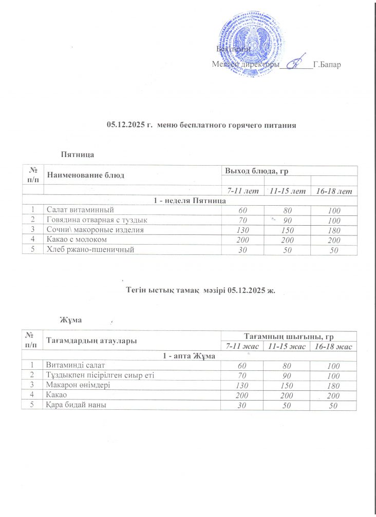 Мәзіp 05.12.2025 ж
