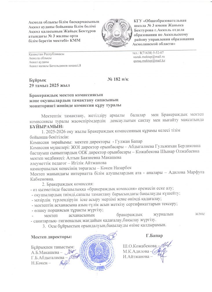 Бракераждық мектеп комиссиясы 2025-2026 оқу жылы
