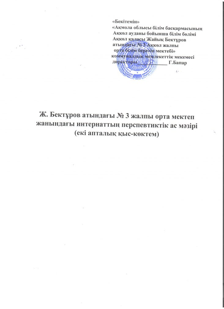Интернаттың перспективтік мәзірі Қыс-Көктем 2025-2026 оқу жылы