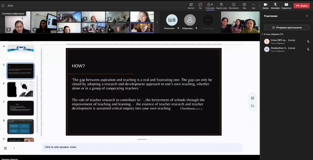 Біз үшін бұл жоба мектептің болашағына маңызды қадам болып табылады. Әрбір ұстазға кәсіби даму мүмкіндіктерін ұсыну және ғылыми зерттеулер негізінде жұмыс істеу дағдыларын жетілдіру – бұл біздің мектептегі білім беру сапасын жаңа деңгейге көтеруге мүмкіндік береді.
