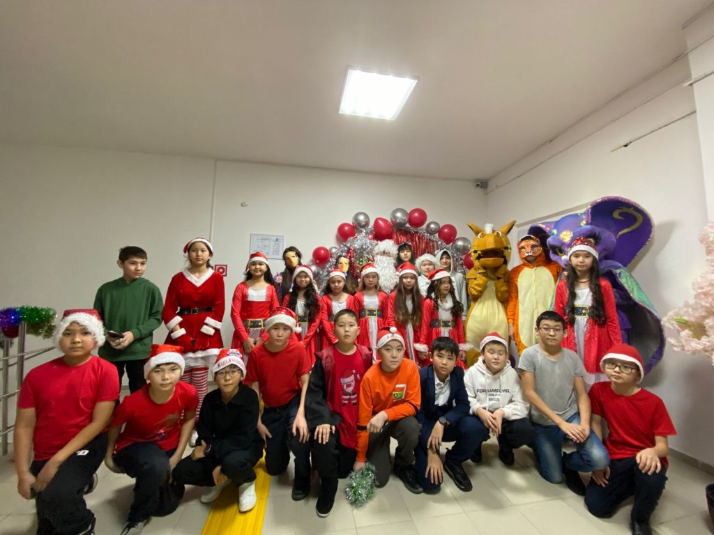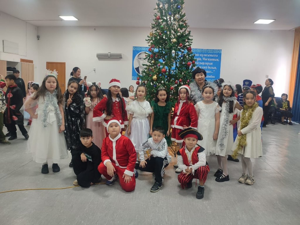 0–4 сынып оқушылары үшін жаңа жылдық ертегі желісіндегі мерекелік қойылым көрсетілді. Бұл қойылымда жоғары сынып оқушылары ертегі кейіпкерлерінің рөлін шебер сомдап, бастауыш сынып бүлдіршіндеріне нағыз мерекелік қуаныш сыйлады. Балалар Аяз ата мен Ақшақарды қуана қарсы алып, ән айтып, би билеп, ойындарға белсене қатысты. Соңында барлық бүлдіршіндерге тәтті сыйлықтар таратылды.